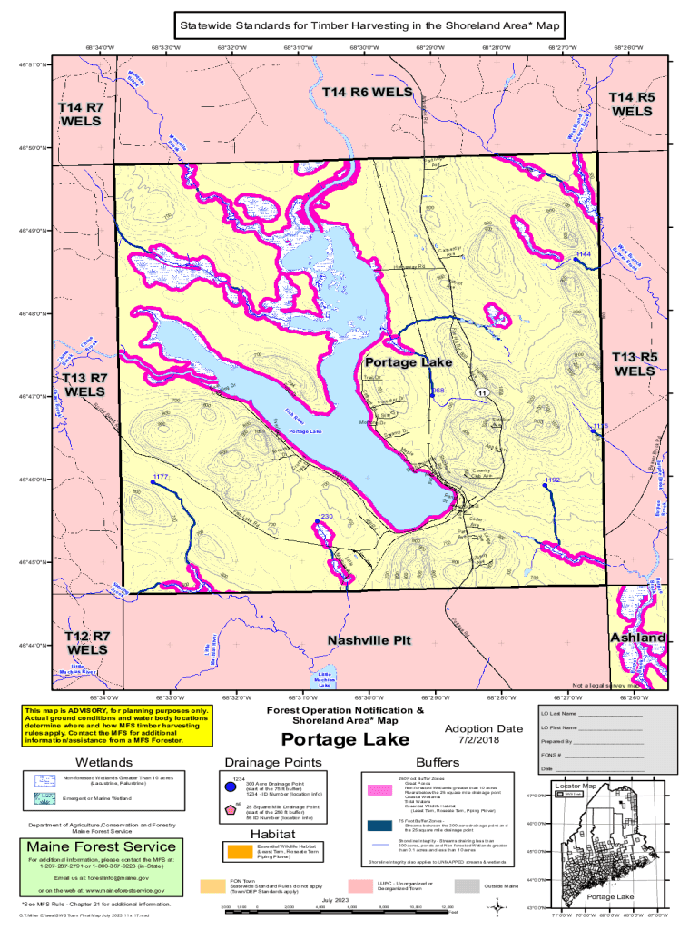 Statewide Standards for Timber Harvesting in the Shore land Area* Map 6832\'0\”W6831\'0\”W6830\'0\”With EU k Como s Br6829\'0\”WT14 R7 WELS6827\'0\”Warier took RdT14 R6 WELS6828\'0\”WM