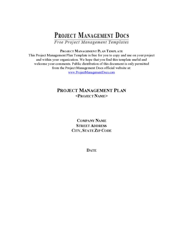 PROJECT MANAGEMENT PLAN TEMPLATE This Project Management Plan Template is free for you to copy and use on your project and within your organization. We hope that you find this template useful and
