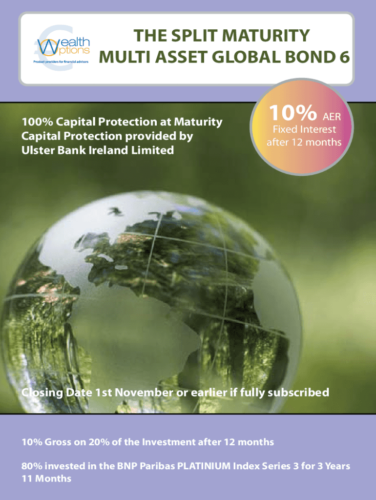 THE SPLIT MATURITY MULTI ASSET GLOBAL BOND 6100% Capital Protection at Maturity Capital Protection provided by Ulster Bank Ireland Limited10% AER Fixed Interest after 12 monthsClosing Date 1st November