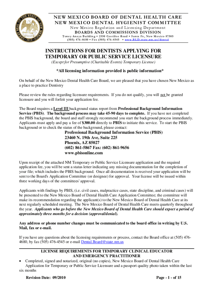Step 10: Submit the application form and supporting documents to the New Mexico Dental Hygienist Board.
