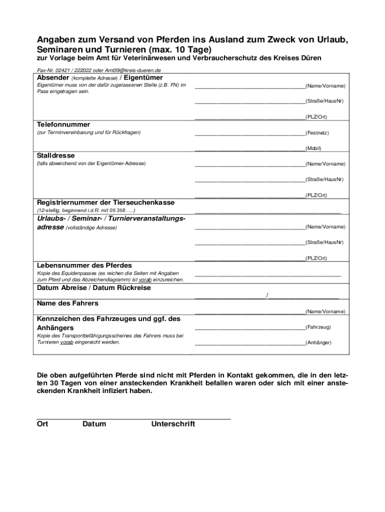 How to fill out transport von pferden ins
