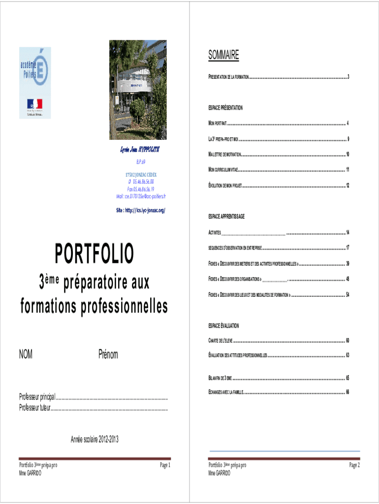 SUMMARY PRESENTATION DE LA FORMATION.............................................................................................................................. 3ESPACE PRESENTATION MON PORTRAIT