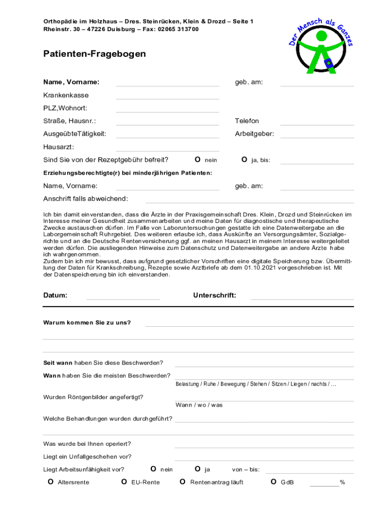 Against. 30 47226 Duisburg Fax: 02065 313700PatientenFragebogen