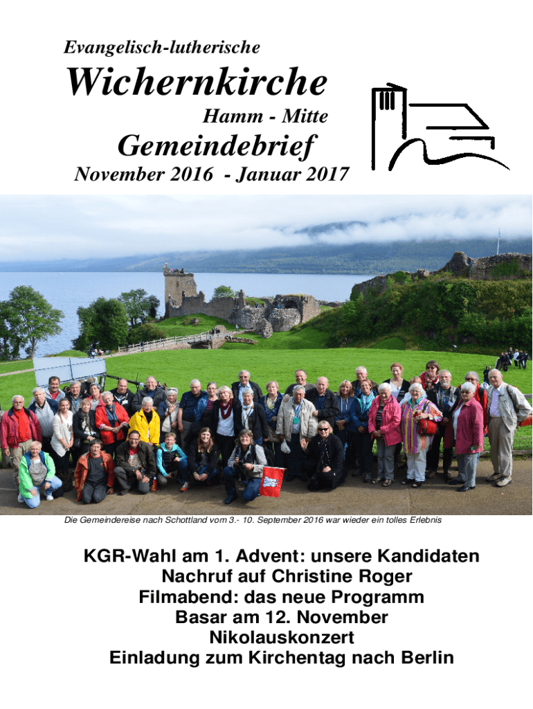 November 2016 January 2017Die Gemeindereise each Scotland com 3. 10. September 2016 war wider an tolls ErlebnisKGRWahl am 1. Advent: unfair