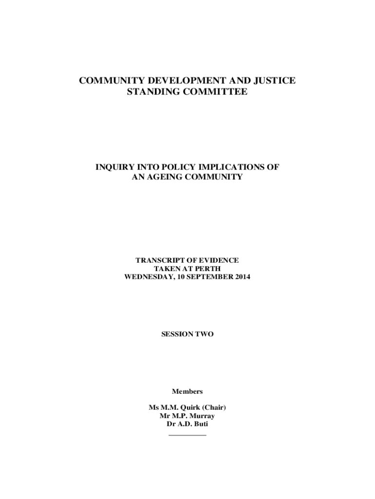 COMMUNITY DEVELOPMENT AND JUSTICE STANDING COMMITTEEINQUIRY INTO POLICY IMPLICATIONS OF AN Aging COMMUNITYTRANSCRIPT OF EVIDENCE TAKEN AT PERTH WEDNESDAY, 10 SEPTEMBER 2014SESSION Members Ms M.M.