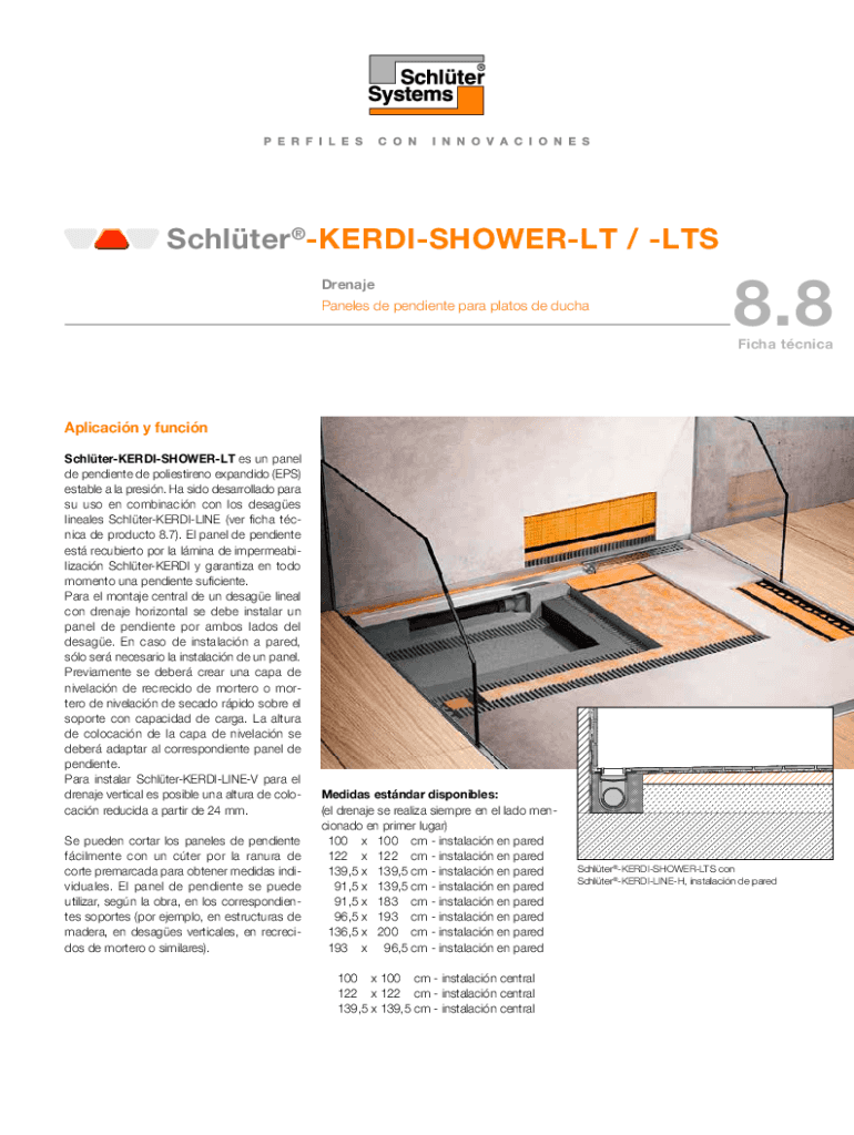 SchlterKERDISHOWERLT / LTS Grenade Panels de pendent para plates de ducha8.8Ficha tcnicaAplicacin y function SchlterKERDISHOWERLT BS UN panel de pendent de poliestireno expanded (EPS) stable à la