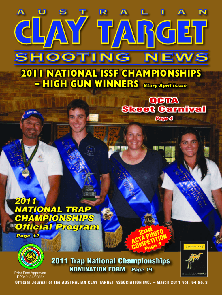2011 NATIONAL ISAF CHAMPIONSHIPS HIGH GUN WINNERS Story April issue CTA Skeet Carnival Page 42011 NATIONAL TRAP CHAMPIONSHIPS Official Program Page 122ndHOTO ON AP ACT PETIT8I COM Page2011 Trap National