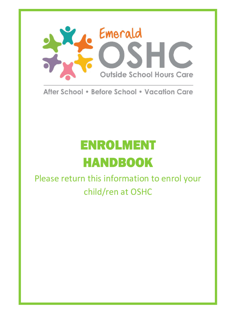 ENROLMENT HANDBOOK Please return this information to enrol your child/ren at OSHCWelcome! Please see our enrolment form below.We require you to fill this form out and return it in person or via email