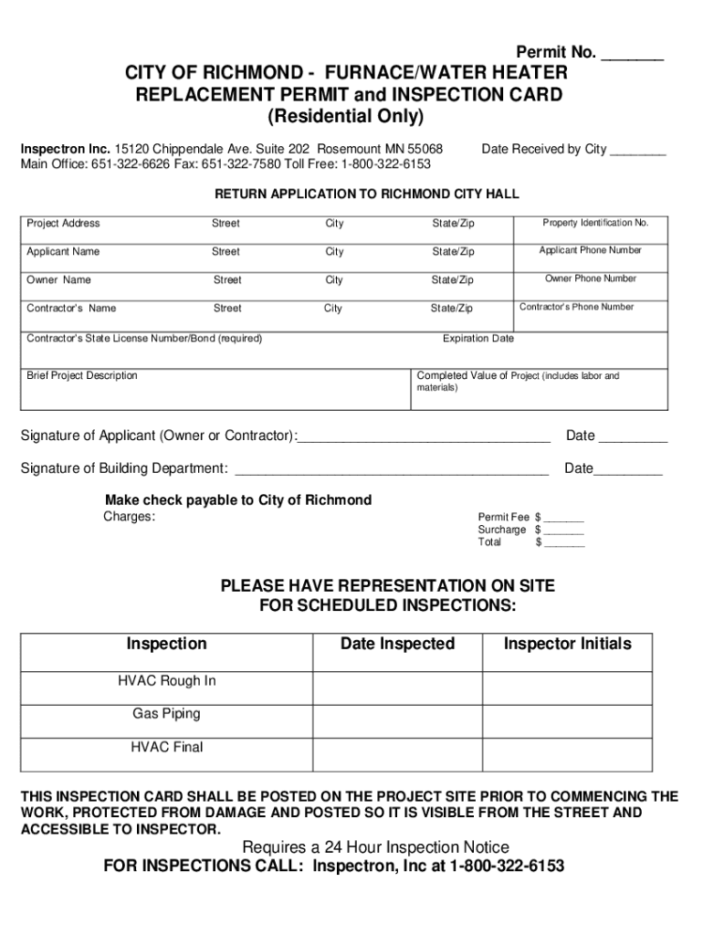 Permit No. ___CITY OF RICHMOND FURNACE/WATER HEATER