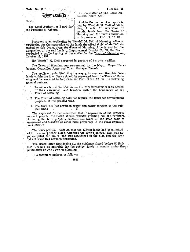 ,. ..Order No, .9.118. , ; .. . . ,. ..::A!.:, I . . . . . . . ...RBUSEIL) Before:..[File: S.F. 88 In the matter of The Local Xuthorities Board Act: 1iAnd in the matter of an apolicaIfi* Of Mantion