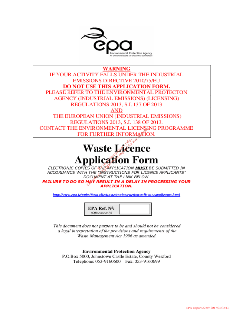 F c FO op r i yr NS IG PE ht ct ow ion né PU r RP EQ OS UI BS re o d NL for y. Ra nyotheruse.WARNING IF YOUR ACTIVITY FALLS UNDER THE INDUSTRIAL EMISSIONS DIRECTIVE 2010/75/EU DO NOT USE THIS APPLICATION