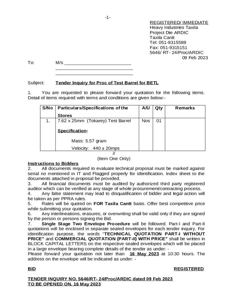 Frequently asked questions about the form Tender Inquiry for Shoe
