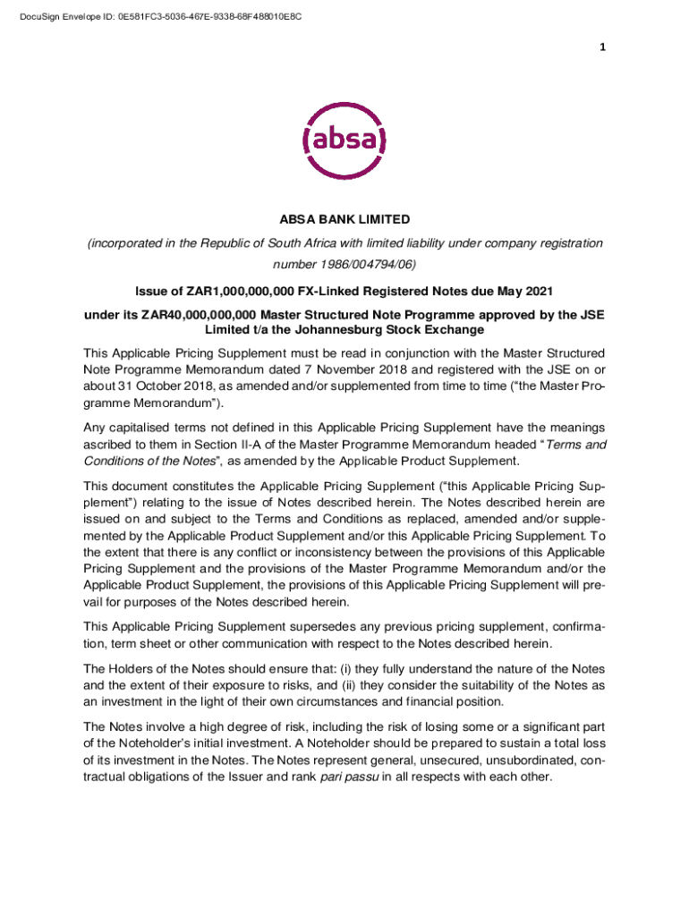 DocuSign Envelope ID: 0E581FC35036467E933868F488010E8C1ABSA BANK LIMITED (incorporated in the Republic of South Africa with limited liability under company registration number 1986/004794/06) Issue