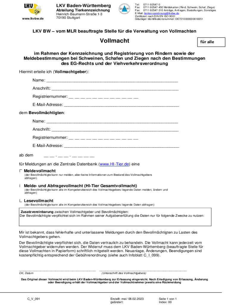 LKV BadenWrttemberg Abteilung Tierkennzeichnung HeinrichBaumannStrae 13 70190 Stuttgartwww.lkvbw.deTel: 0711925470 Fax: 071192547450 Meldekarten (Rind, Schwein, Schaf, Ziege) Fax: 071192547310 Antrge,