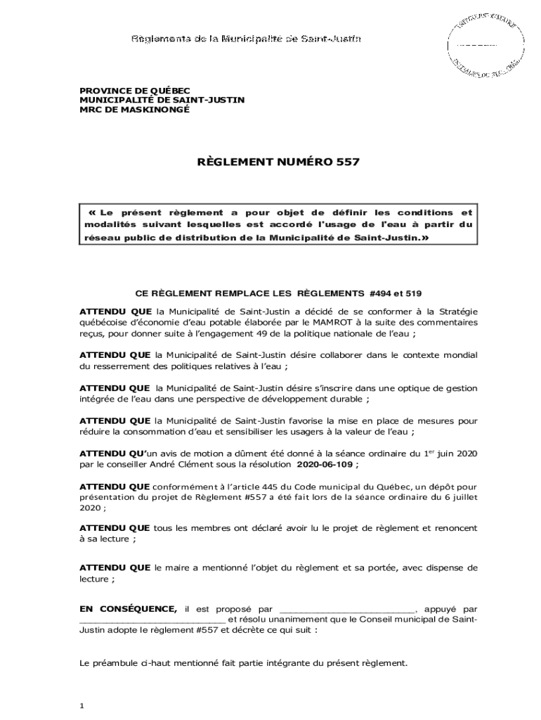 MRC DE MASKINONGRGLEMENT NU MRO 557Le present element a pour object de diner LES conditions modality servant lesquelles est accord l\'usage de l\'EAU