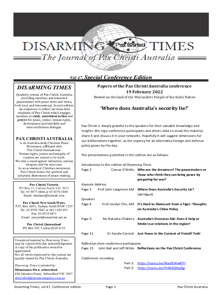 Vol 47, SpecialPapers of the Pax Christi Australia conference