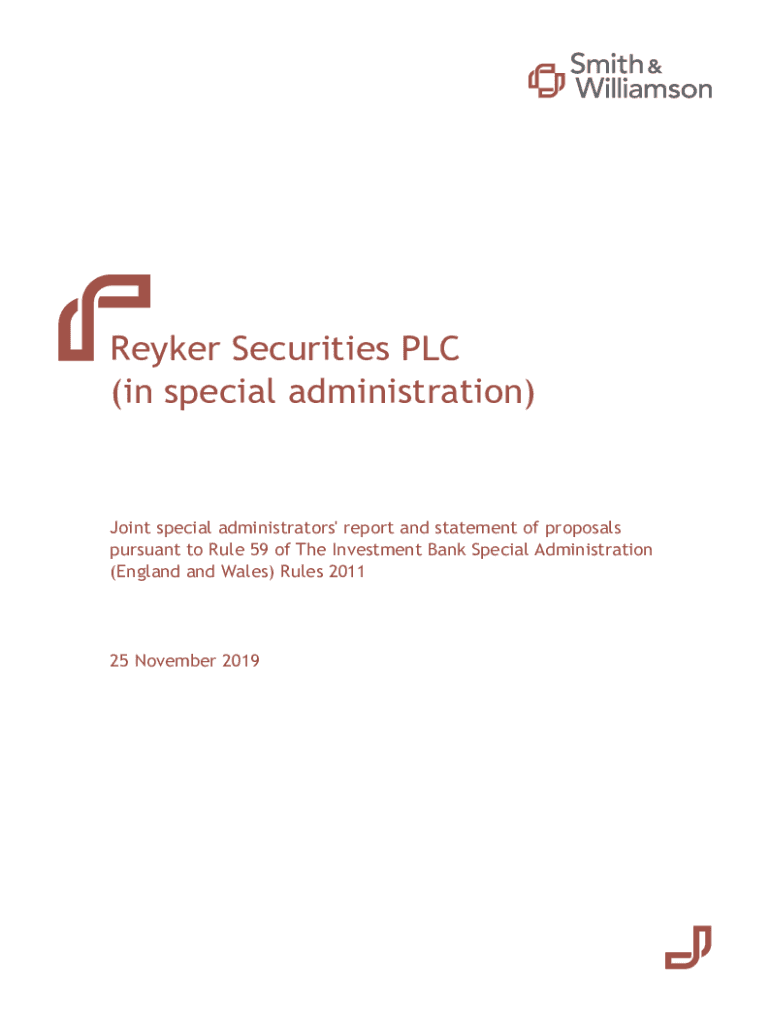 Reyker Securities PLC (in special administration)Joint special administrators\' report and statement of proposals pursuant to Rule 59 of The Investment Bank Special Administration (England and Wales)