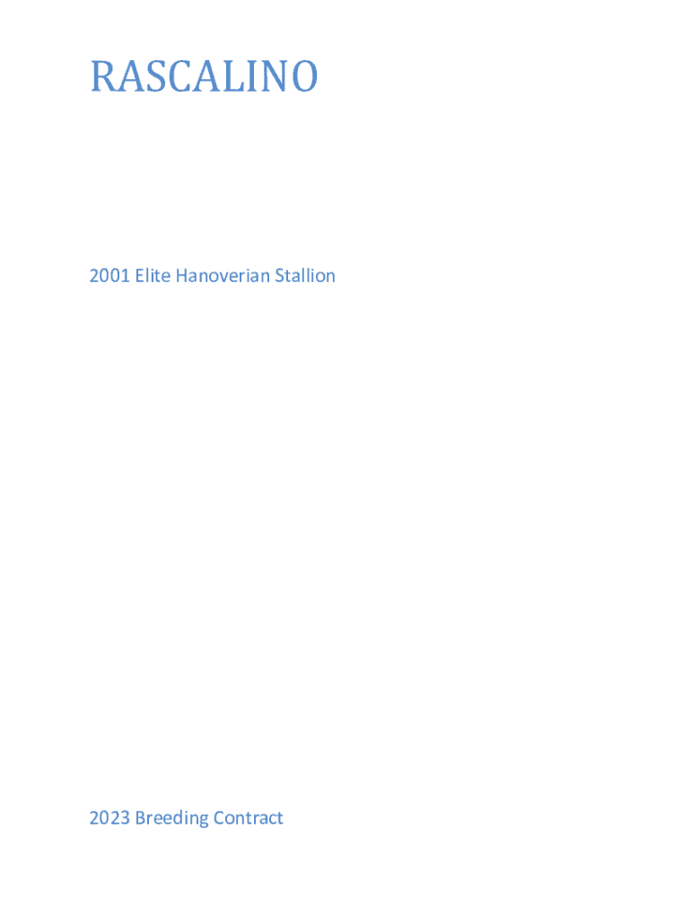 RASCALINO2001 Elite Hanoverian Stallion2023 Breeding Contractual Hollow FarmErieville, NY2023 STALLION SERVICE CONTRACT FOR TRANSPORTED SEMEN