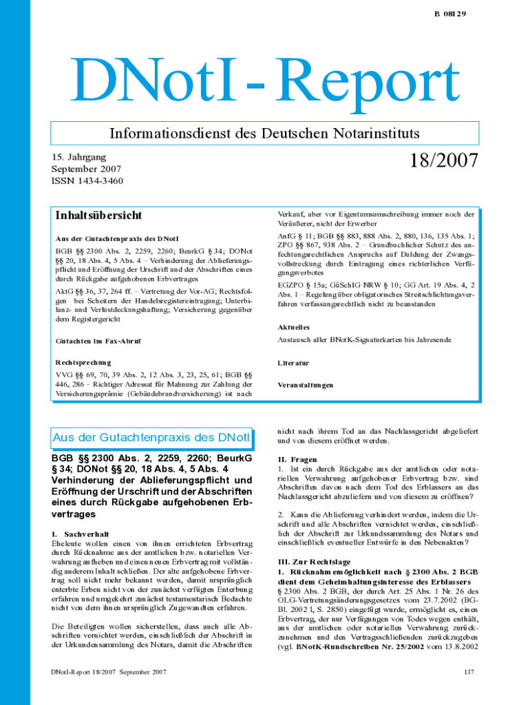 Informationsdienst DES Deutsche Notarinstituts18/200715. Charging