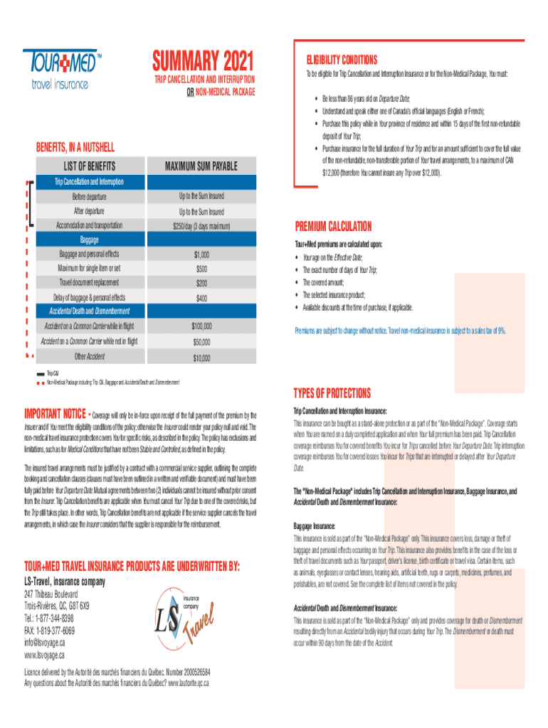 This form is particularly useful for individuals who are traveling overseas, have non-refundable travel expenses, or have a pre-existing medical condition that could potentially lead to trip cancellation or interruption.