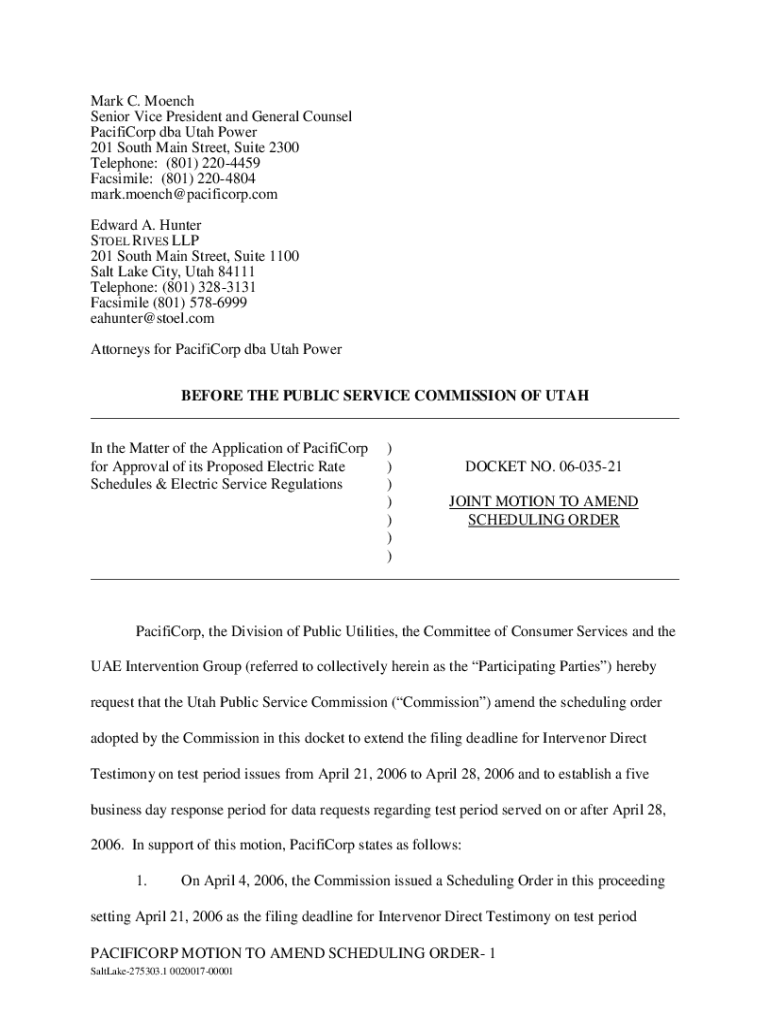 Get the free PACIFICORP MOTION TO AMEND SCHEDULING ORDER