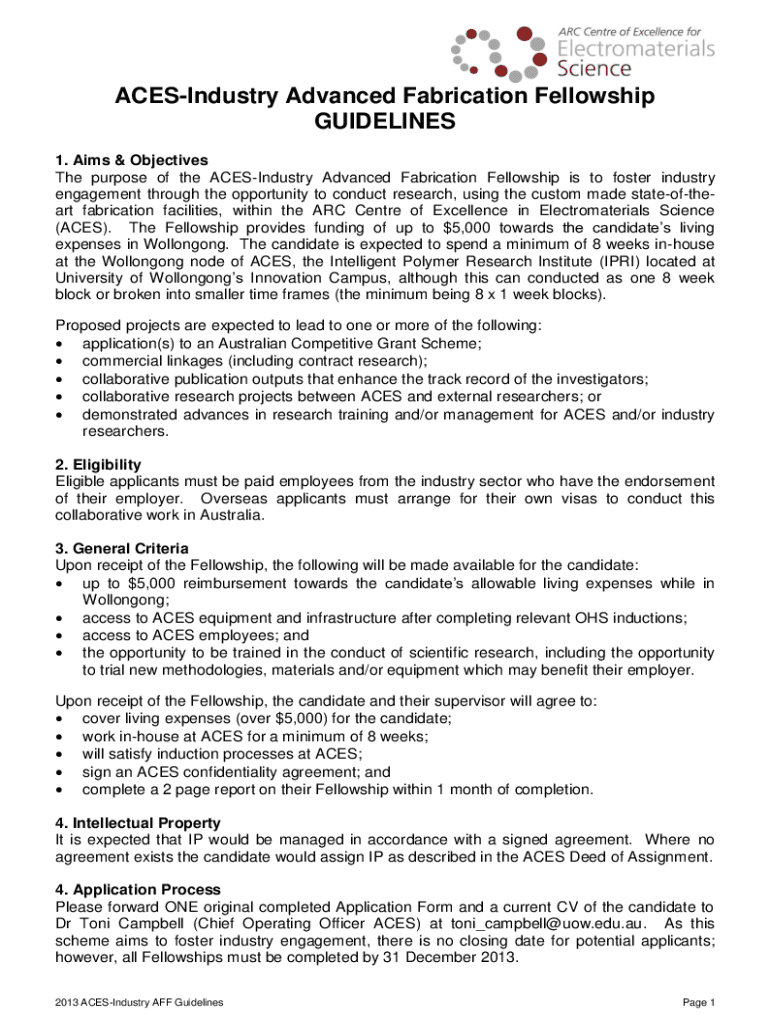 The purpose of the ACESIndustry Advanced Fabrication Fellowship is to foster industry