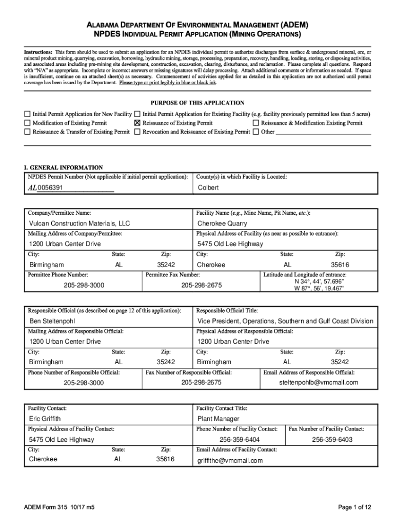 JOE HOWLER. O. BOX 385016 BIRMINGHAM, ALABAMA 352385016 TELEPHONE: 2052983230 FAX: 2052982675 EMAIL: howlej@vmcmail.comMANAGER, ENVIRONMENTAL SERVICES SOUTHERN & GULF COAST DIVISION October 23, 2020