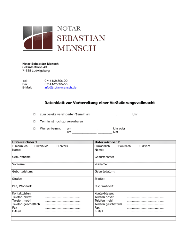 info@notarmensch.deDatenblatt our Forbearing anger Veruerungsvollmacht