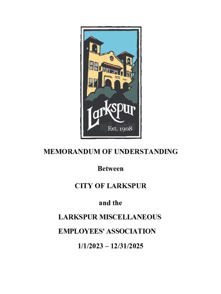 MEMORANDUM OF UNDERSTANDING Between CITY OF LARKSPUR and the LARKSPUR MISCELLANEOUS EMPLOYEES\' ASSOCIATION 1/1/2023 12/31/2025TABLE OF CONTENTS Section 1. Recognition ................................................................................................................................................................1