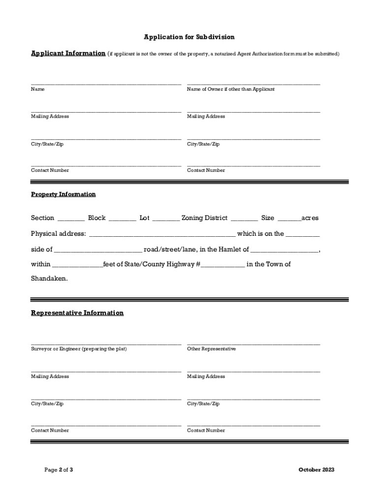 Get the free Subdivision-Application-Current.pdf