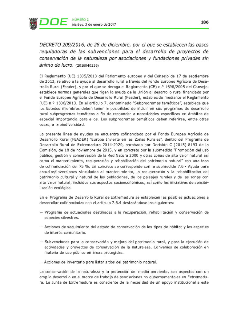 Mates, 3 de Nero de 2017186DECRETO 209/2016, DE 28 de December, POR el Que SE stablemen leis bases