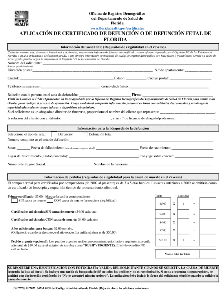 www.floridahealth.gov/certificatesAPLICACIN DE CERTIFICATE DE DEFUNCT O DE DEFUNCT FETAL DE