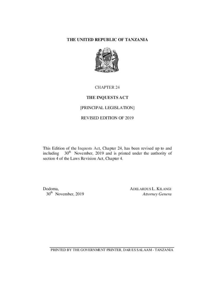 THE UNITED REPUBLIC OF TANZANIA CHAPTER 24 THE INQUESTS ACT [PRINCIPAL LEGISLATION] REVISED EDITION OF 2019This Edition of the Inquests Act, Chapter 24, has been revised up to and including 30th November