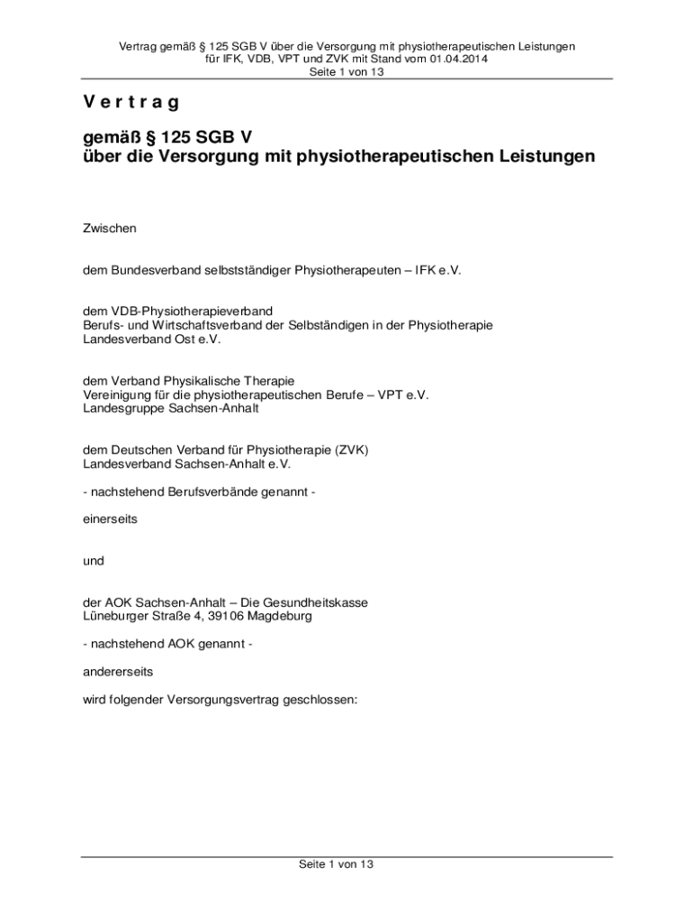 Holen Sie sich kostenlos Vertrag zwischen dem Bundesverband selbstndiger Physiotherapeuten (IFK),...