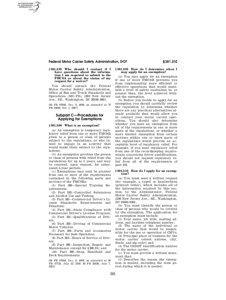 Get the free Federal Motor Carrier Safety Administration, DOT381.200