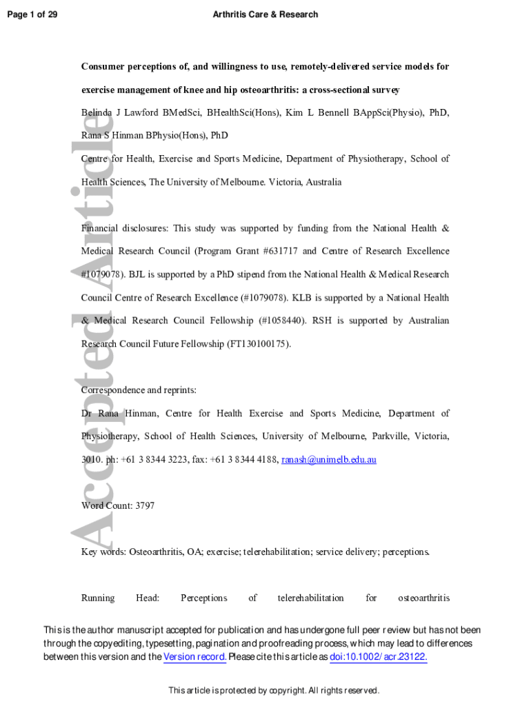 Page 1 of 29Arthritis Care & ResearchConsumer perceptions of, and willingness to use, remotely delivered service models for
