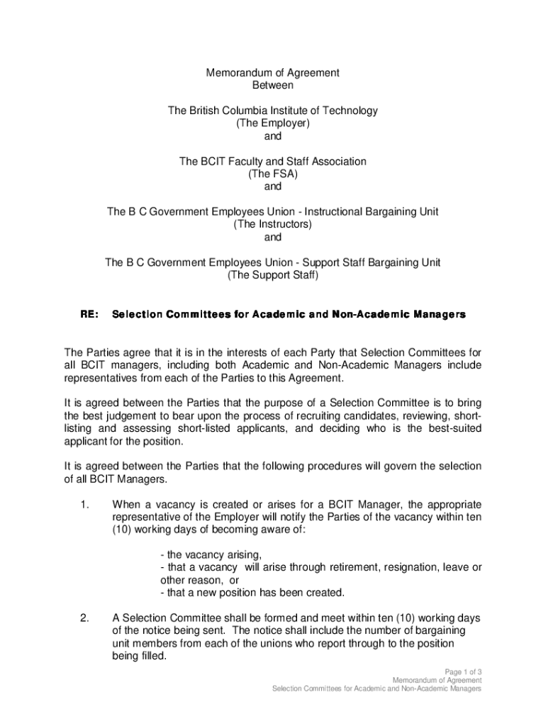 Get the free COLLECTIVE AGREEMENT. between. BCIT Faculty and Staff ...