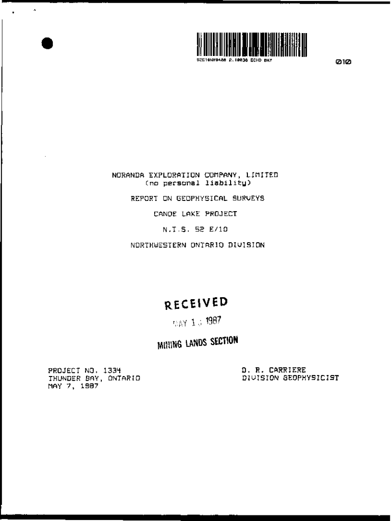 52E18NW9488 2 .1TO38 ECHO BAY010NORANDA EXPLORATION COMPANY, LIMITED