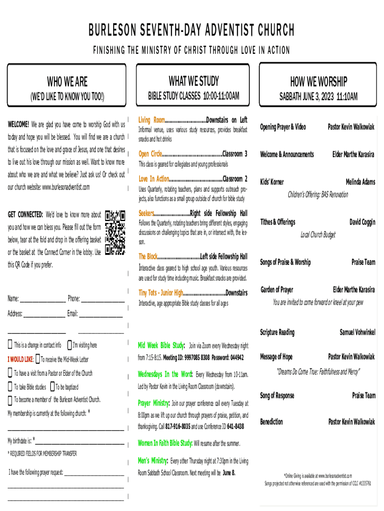 pdfFiller not only allows you to edit the content of your files but fully rearrange them by changing the number and sequence of pages. Upload your burleson adventist school to the editor and make any required adjustments in a couple of clicks. The editor enables you to blackout, type, and erase text in PDFs, add images, sticky notes and text boxes, and much more.