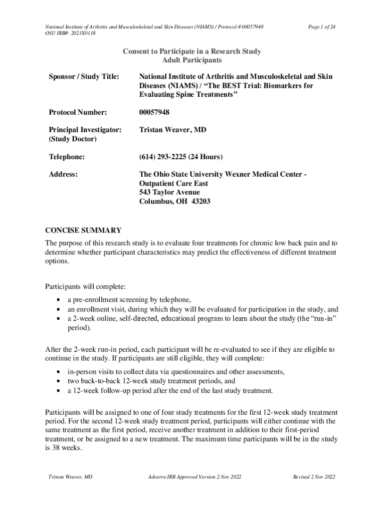 National Institute of Arthritis and Musculoskeletal and Skin Diseases (NIAMS) / Protocol # 00057948 OSU IRB#: 2021X0118Page 1 of 24Consent to Participate in a Research Study Adult Participants Sponsor