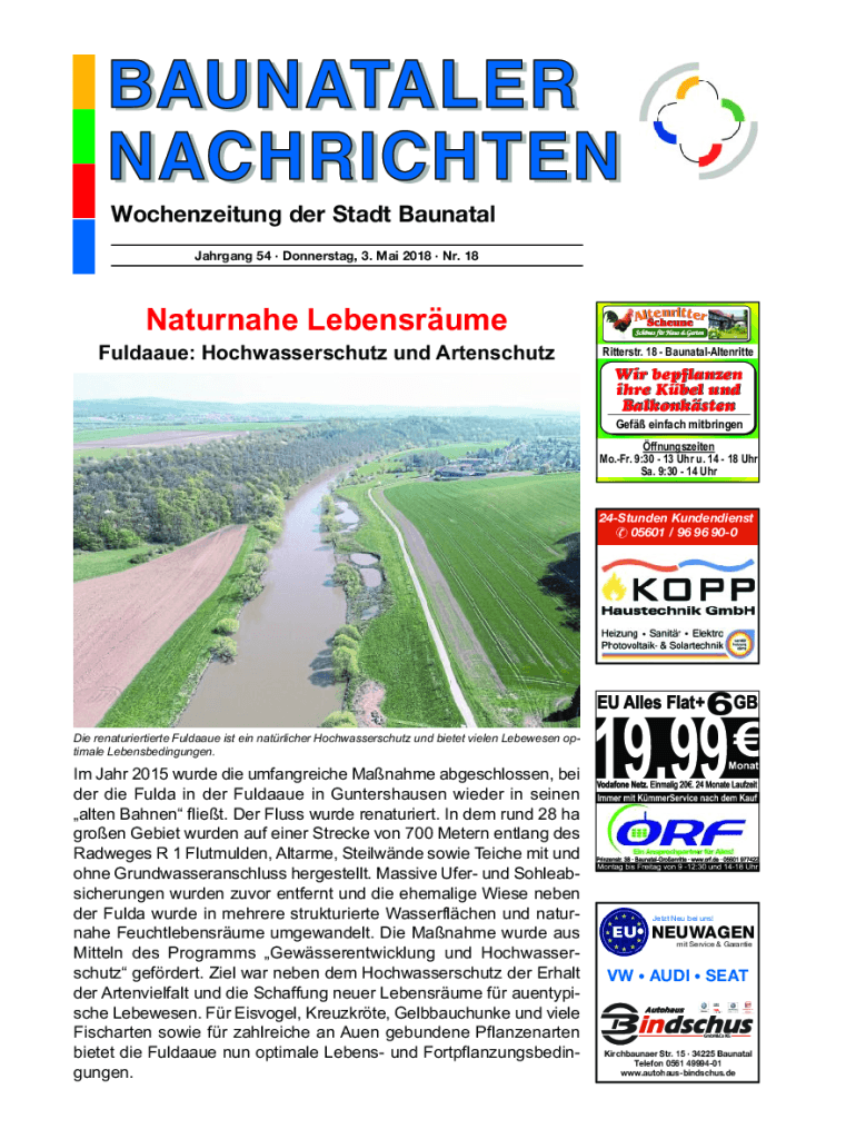 Charging 54 Donner stag, 3. Mai 2018 NR. 18Naturnahe LebensrumeFuldaaue: Hochwasserschutz UND Artenschutz24Stunden Kundendienst