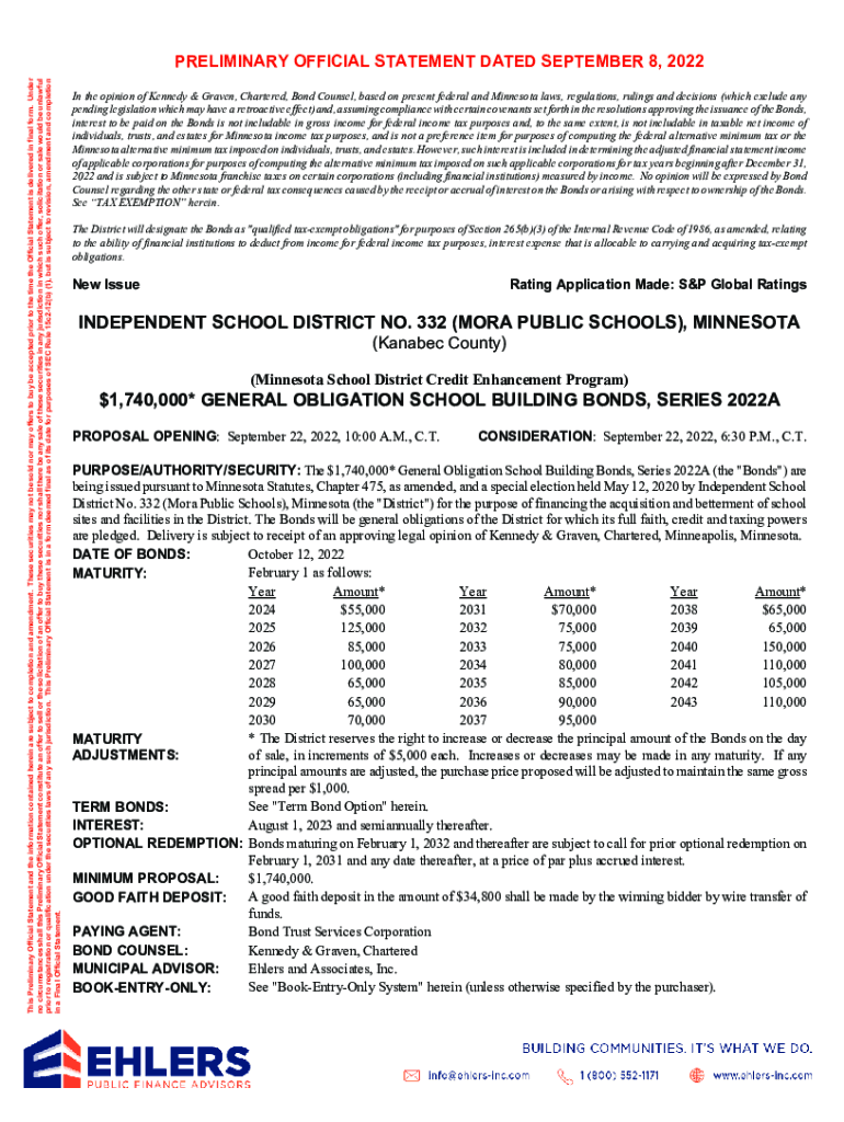 nmnsdmoradebt issuancebisum2022a1740 - ehlers is needed by individuals or institutions who are interested in investing in the municipal bond offering by ehlers. This may include bond traders, financial institutions, and individual investors who want to diversify their investment portfolios.