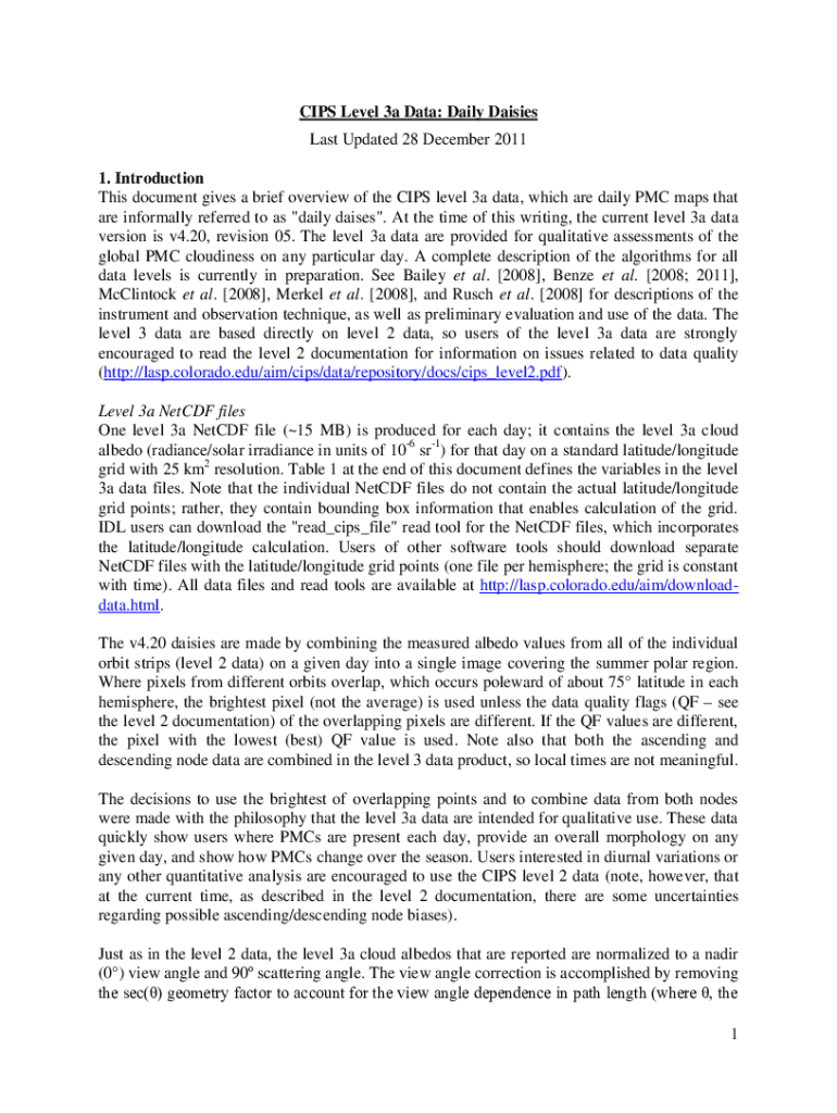 CAPS Level 3a Data: Daily Daisies Last Updated 28 December 2011 1. Introduction This document gives a brief overview of the CAPS level 3a data, which are daily PMC maps that are informally referred