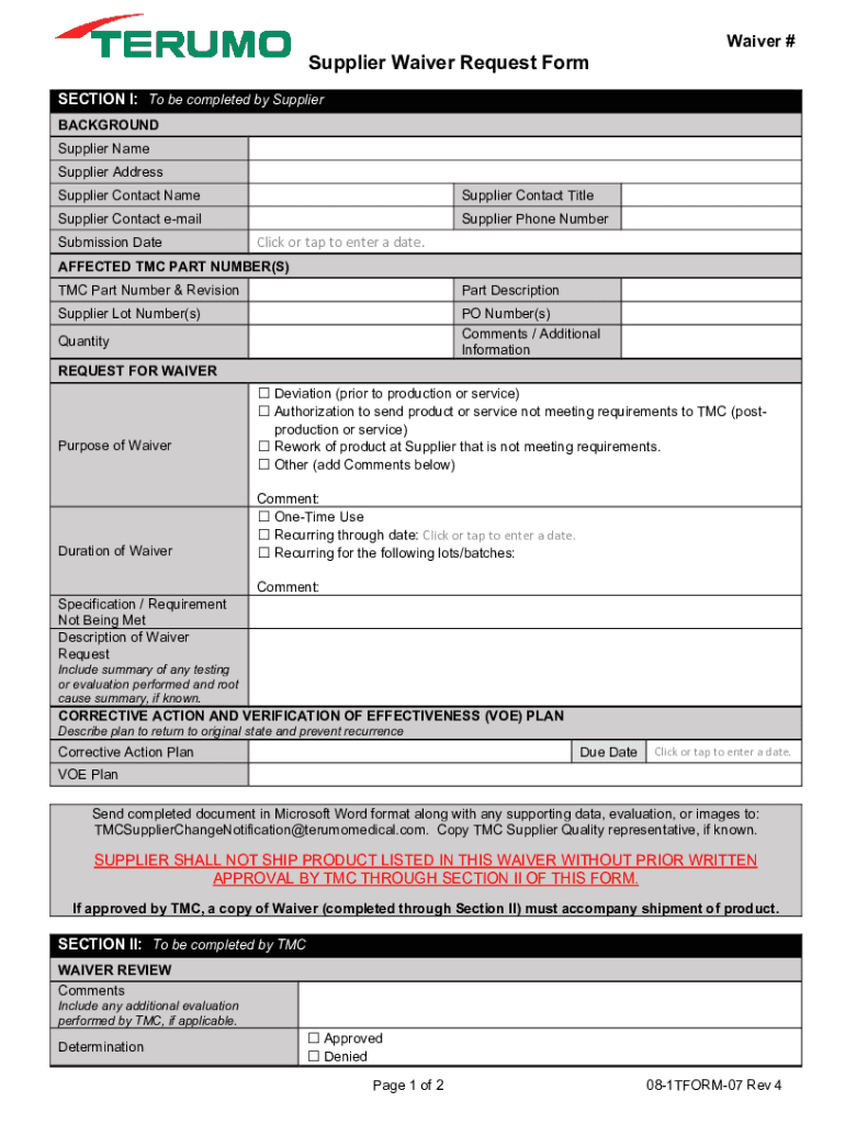 Supplier Waiver Request Formative #SECTION I: To be completed by Supplier
