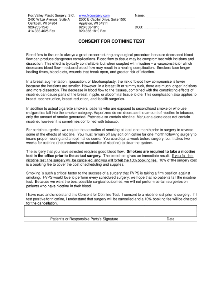 Get the free CONSENT FOR COTININE TEST