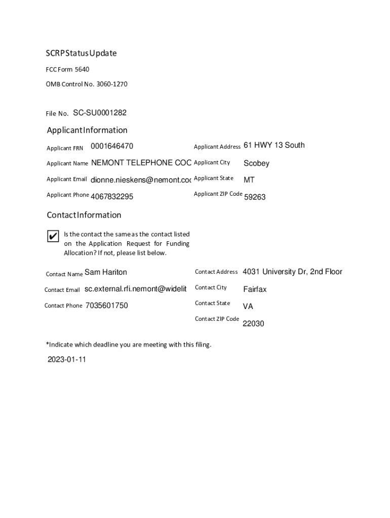 Applicant Address61 HWY 13 SouthApplicant FRN0001646470Applicant NameApplicant City INCScobey
