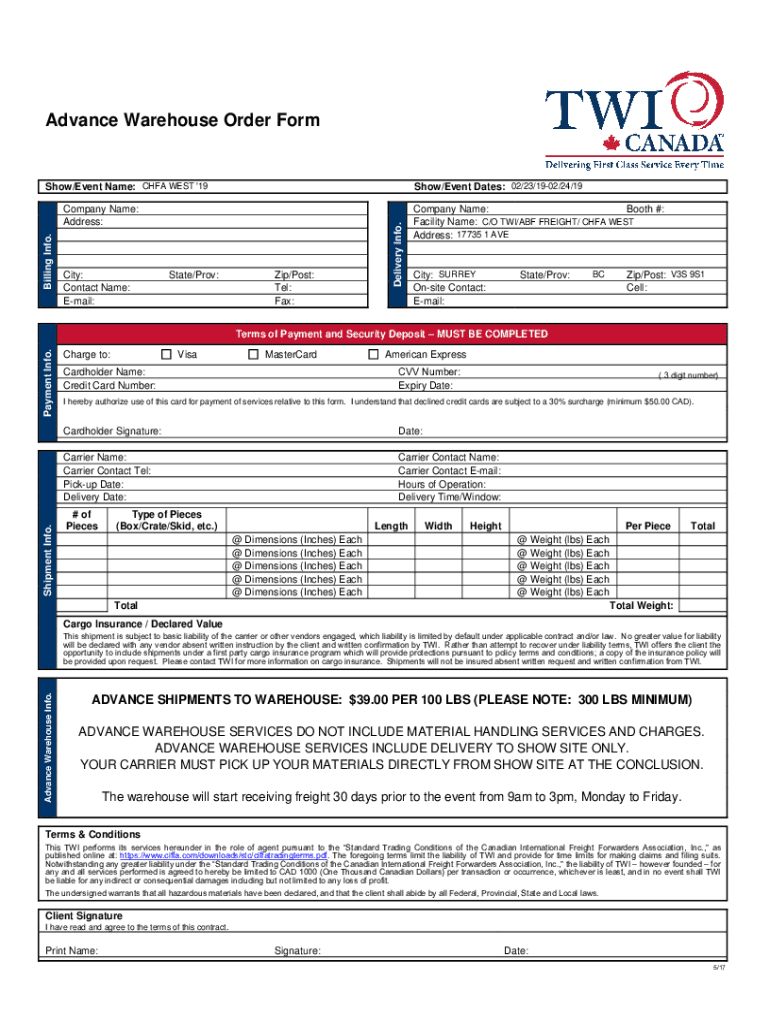 CFA WEST \'19 Appointed by:VANCOUVER CONVENTION Center VANCOUVER, BC FEBRUARY 23 & 24, 2019 Customs Clearance & Transportation Services TWO Canada has been appointed by Canadian Health Food Association