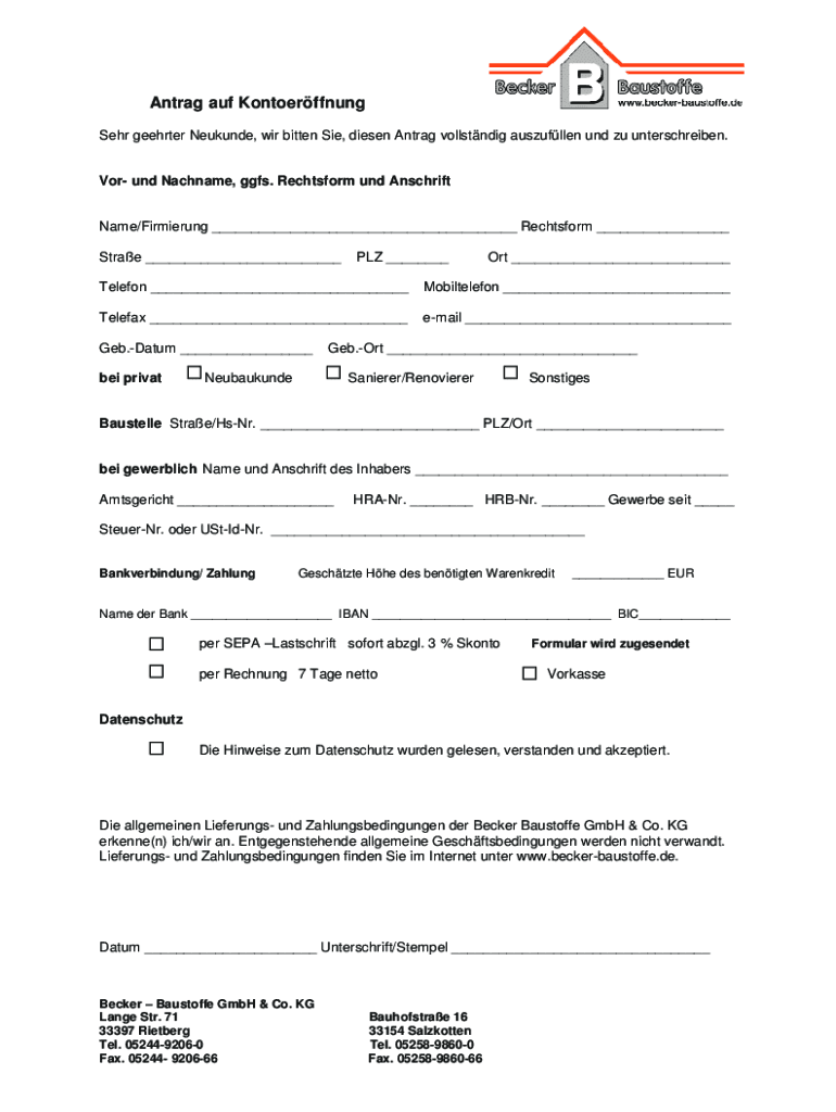 Ant rag AUF Kontoerffnung