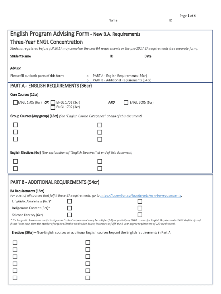 Namespace 1 of 4English Program Advising Form New B.A. Requirements