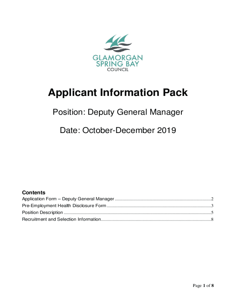 Applicant Information Pack Position: Deputy General Manager Date: October December 2019Contents Application Form Deputy General Manager ...................................................................................2